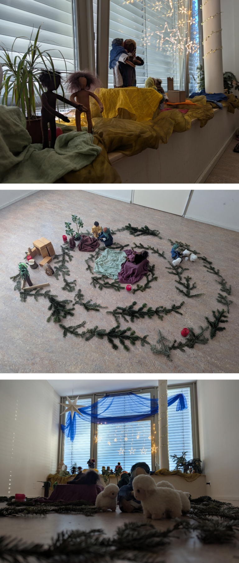 Diese Reise mit Maria und Josef führte uns schließlich zur Krippe, wo die Weihnachtsgeschichte ihren Höhepunkt fand. Jeden Montag entzündeten wir gemeinsam die Adventskerzen und sangen gemeinsam Weihnachtslieder.