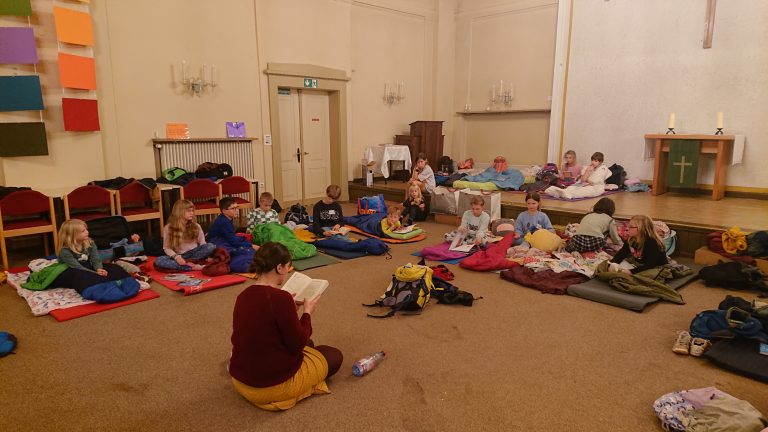 Am 24.10.2025 fand in den Räumen der Trinitatiskirchgemeinde der zweite Geschichtenabend mit Übernachtung statt.Wir waren eine bunt gemischte Kindergruppe aus vielen Schwesternkirchen unserer Region und es war ein gelungener Abend!