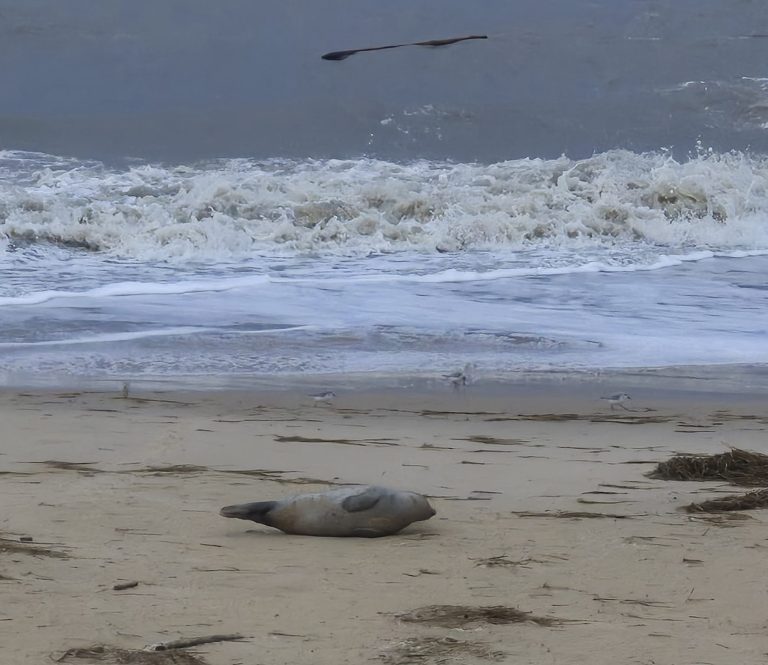 „Papa, guck mal, da liegt ja eine Robbe. Die wird doch hier verhungern!“ Ich blicke in die Richtung, in die der Junge zeigt. Ohne seinen Ausruf hätte ich die Robbe nicht gesehen. Sie verschmilzt so mit dem Sand des Strandes, dass ich genau hinschauen muss, um sie auszumachen. Ab und zu hebt sie den Kopf – wie um sich zu vergewissern, dass keine Gefahr droht. Mehr Menschen bleiben stehen und machen Fotos. Hundegebell ist aus der Ferne zu hören. Es ist weit genug weg, um die Robbe nicht zu beunruhigen.